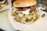 Grilled Jalapenos, American Cheese, Mayo, Lettuce, Tomatoes, Onions, Pickles.
